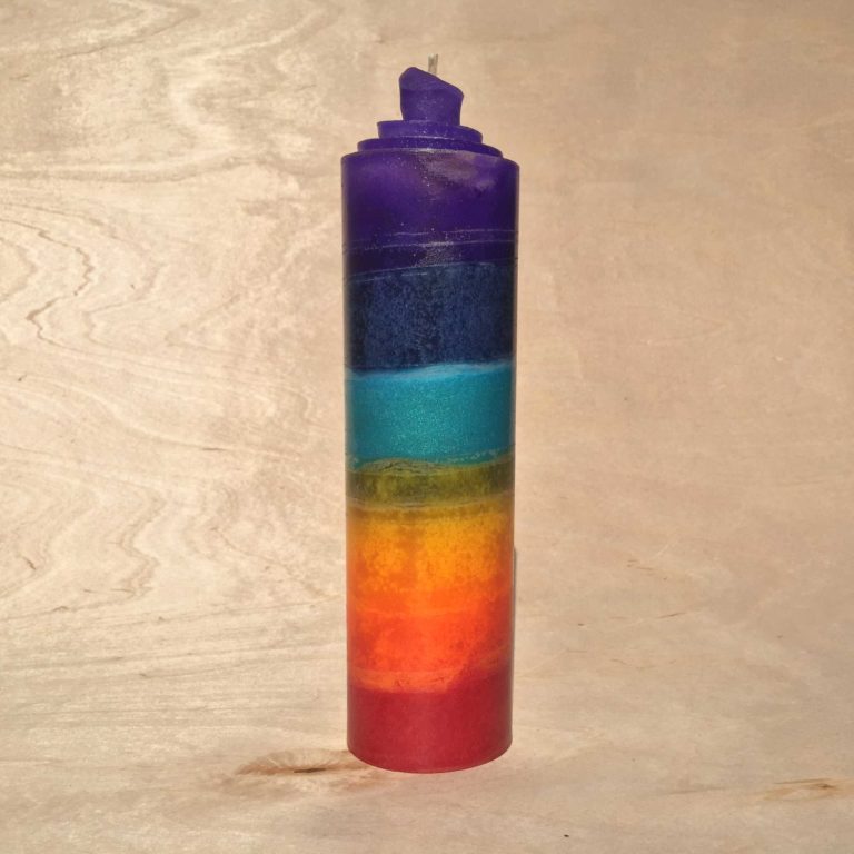 Die gerollte Chakren Streifen Kerze kann ein wunderbares Geschenk, genau die passende Deko für Ihre Wohnung, eine angezündete Kerze während der Meditation/Kontemplation oder für das eigene Wohlbefinden bei brennenden Kerzenschein zum genießen als Kerzenliebhaber sein.