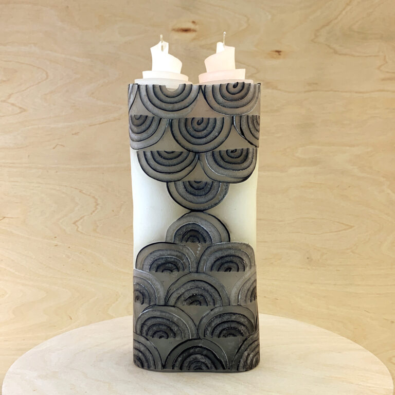 Die Hochzeitskerze “Inka” wirkt geometrisch, geordnet, strukturiert und drückt Stabilität aus.