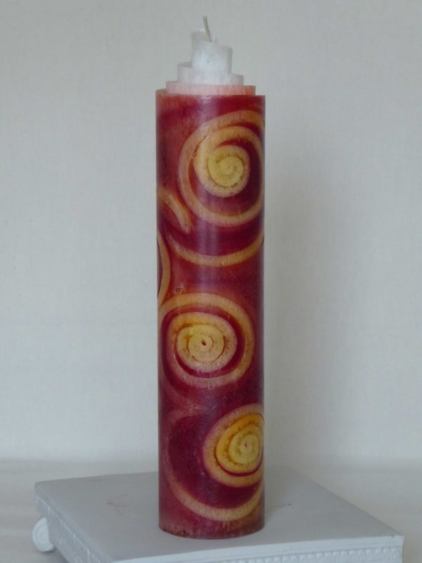 Die Kerze die wir Ihnen zusenden, wird vom Produktbild etwas abweichen, da jede gerollte Kerze handgefertigt wird & somit immer ein Unikat ist. Die Farbzusammenstellung & Wirkung wird aber die selbe sein.