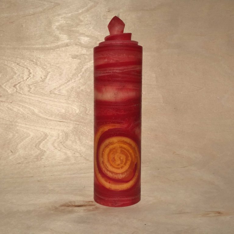Die rote gerollte Streifen Kerze mit gelber Spirale kann ein wunderbares Geschenk, zur Meditation/Kontemplation, genau die passende Deko für Ihre Wohnung oder für das eigene Wohlbefinden zum anzünden & genießen als Kerzenliebhaber sein.