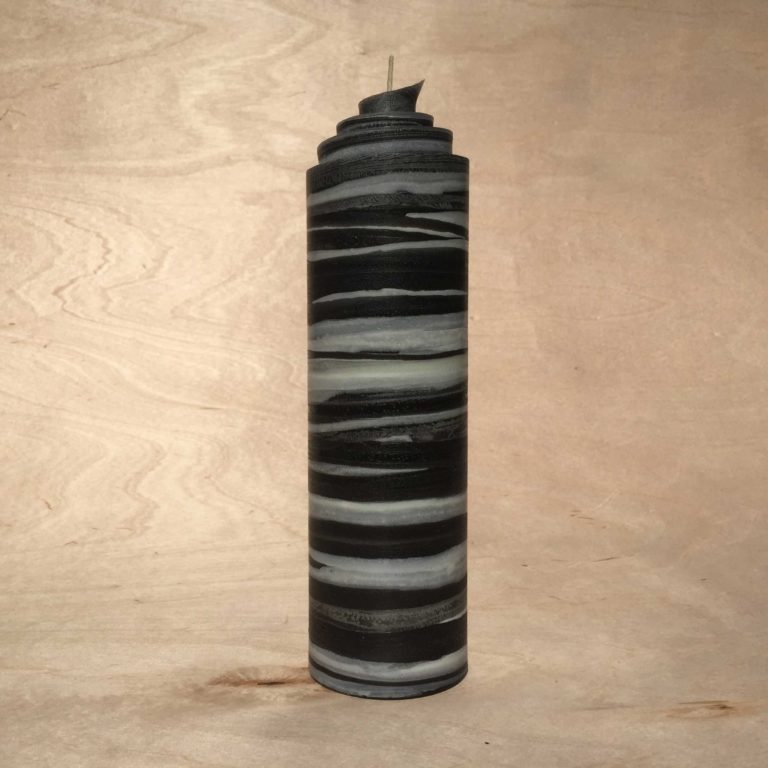 Die schwarz weisse gerollte Streifen Kerze kann ein Präsent zur Trauer, genau die passende Deko für Ihre Wohnung oder für das eigene Wohlbefinden zum anzünden & genießen als Kerzenliebhaber sein.