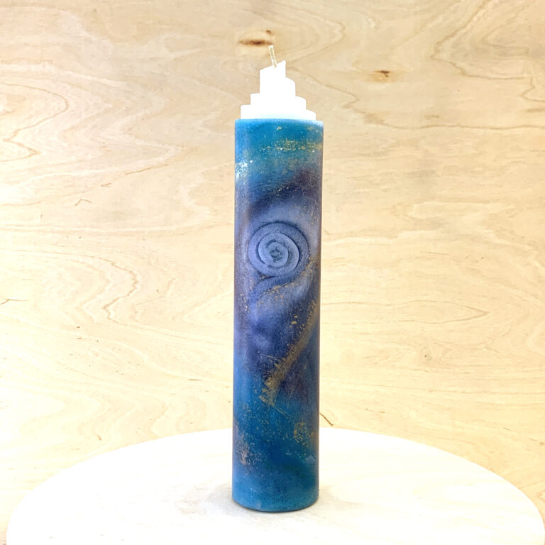 Die Trauerkerze Sternenreise hat eine Länge vom Boden bis zur Dochtspitze von 24 Zentimetern und brennt circa 80 Stunden.