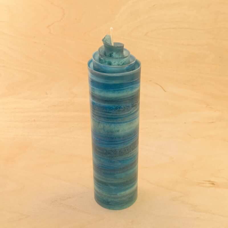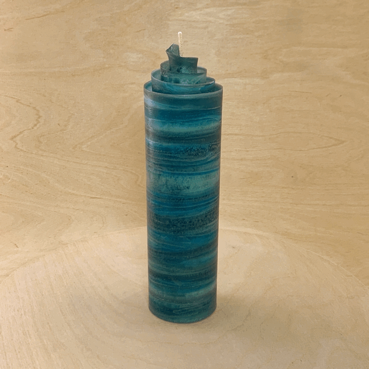 Die türkis petrol gerollte Streifen Kerze kann ein wunderbares Geschenk, genau die passende Deko für Ihre Wohnung oder für das eigene Wohlbefinden zum anzünden & genießen als Kerzenliebhaber sein.